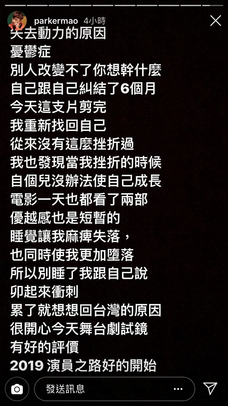 巴巴烙從以前便常常和大家分享自己的演員夢,現在的他也開心表示舞台劇試鏡有好的評價,「2019演員之路有好的開始」,展現正能量的一面。