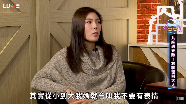 近日理科太太做客《Joeman Show》,和九妹分享了自己面無表情的原因,也意外透露自己是未婚懷孕!理科太太表示其實從小媽媽就教導自己不要有表情,表示這樣才不會有皺紋,所以除了自己之外,「我全家都沒有表情」,而此時九妹就問道:「如果今天發生一件很開心的事情,例如你懷孕那一天?」,理科太太則表示當時媽媽僅說了「很好啊」,超級淡定。