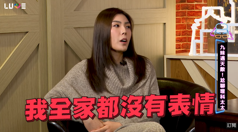 理科太太接著說,「因為我是未婚懷孕嘛,我當時視訊給我老公,然後我老公就說,『嗯,我有一個很複雜的感覺』」,表示當時知道懷孕後,除了媽媽並沒有什麼反應之外,老公也超淡定。理科太太也加碼透露,其實過去理科先生就是面無表情,並不是受自己影響,「我看他小時候的照片也是面無表情啊」。