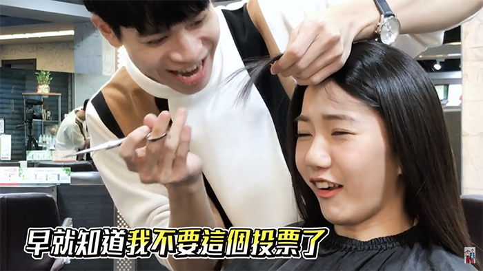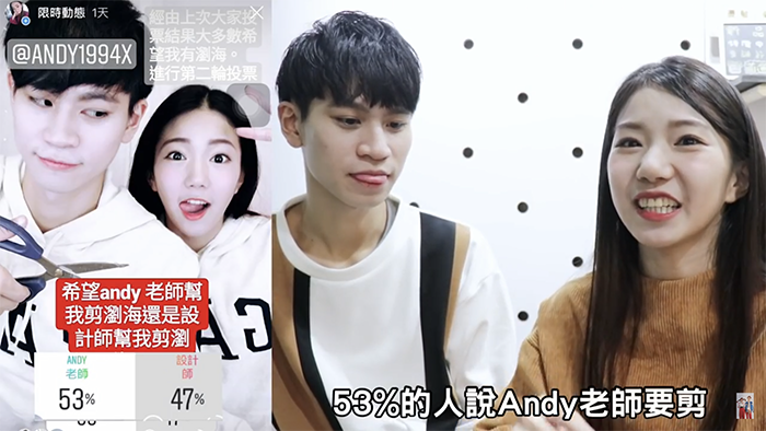 在影片拍攝前一天,家寧在他的IG限時動態上發出一個投票,問粉絲們自己需不需要剪瀏海,接著她再開了一個投票是要給Andy剪還是交給專業設計師,投票結果是Andy獲得53%的票數勝出。在剪瀏海前Andy和家寧說道:「不用擔心啦,我剪頭髮之前就幫妳剪過了啊」,但保險起見他們還是到了髮廊,方便隨時補救。