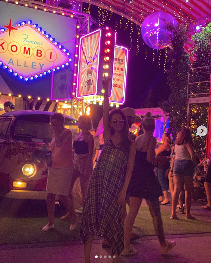 日前,昆凌和周杰倫分別PO出帶小孩到野生動物園玩耍的影片,只見她一邊忙著照顧兒子,一邊還要關心女兒,周杰倫則充當攝影師,為這個美麗的時刻留下紀念。不過就在5日,昆凌也罕見的曬出多張素顏照,從她曝光的照片可見,她和老公到當地的夜市,但因南半球目前是炎熱的夏天,她則穿著簡單的無袖格子洋裝、戴著簡約的圓形耳環,微微露出吹彈可破的肌膚及性感的鎖骨,打扮輕鬆又不失時尚感。