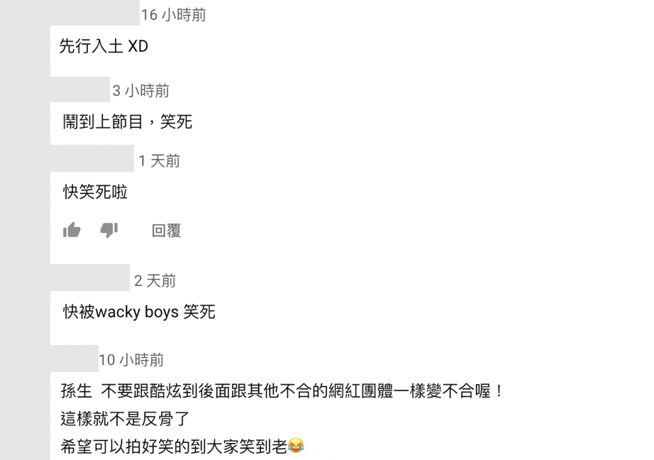 看完酷炫嚴厲指控孫生的罪狀後,網友紛紛留言:「先行入土 XD」、「鬧到上節目,笑死」、「快笑死啦」、「孫生 不要跟酷炫到後面跟其他不合的網紅團體一樣變不合喔!這樣就不是反骨了!希望可以拍好笑的到大家笑到老」