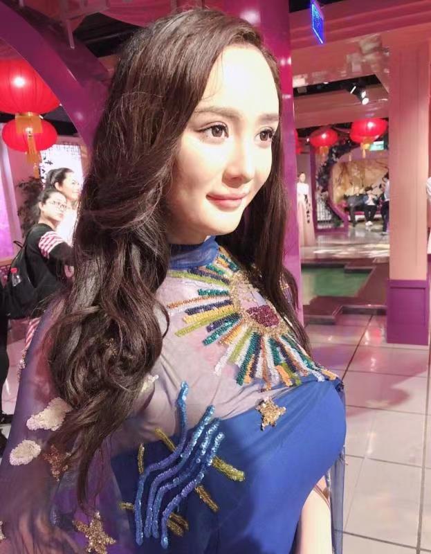 楊冪的蠟像相似度非常的高,從整體的造型和神態動作,以及楊冪招牌的大眼睛都做的非常逼真,簡直可以媲美本人,連臉上的光影凹陷感都表現的非常細緻,從近照看,蠟像上的肌膚紋理都非常真實!