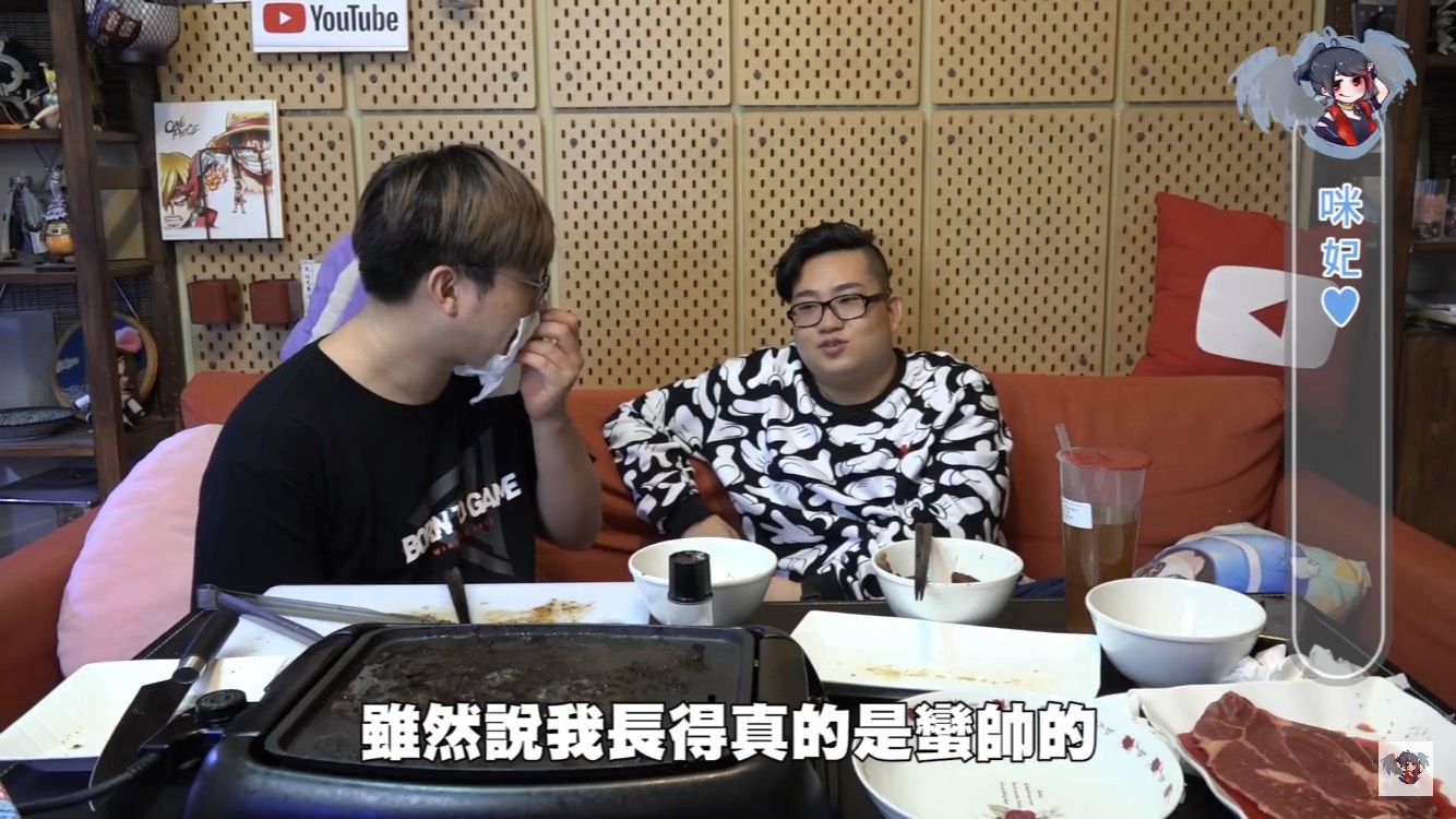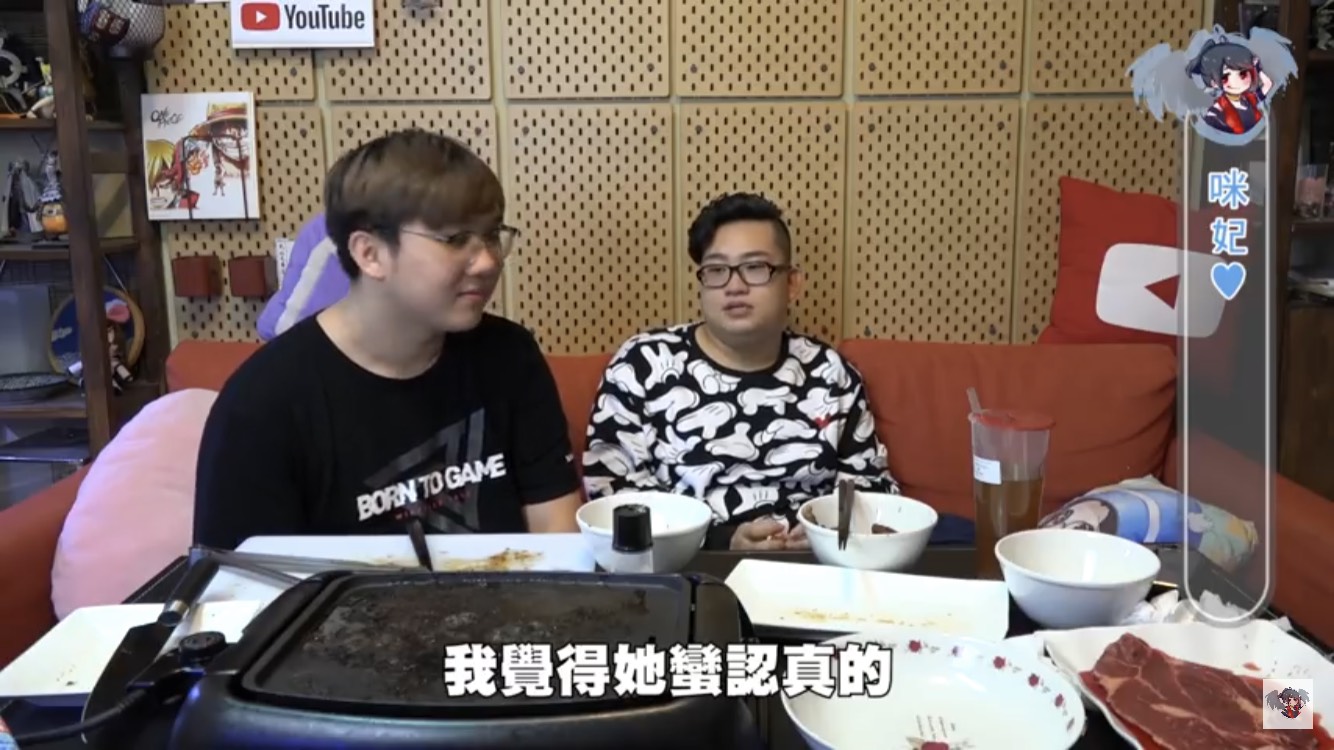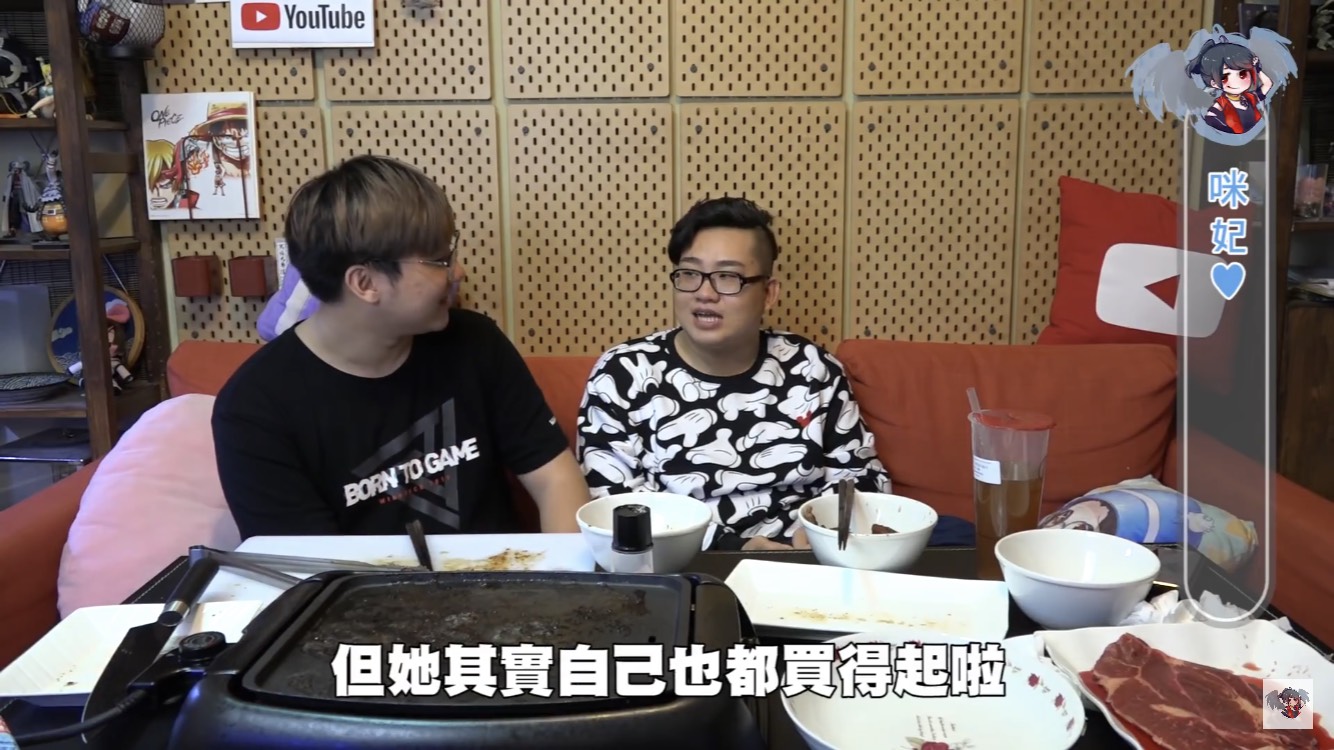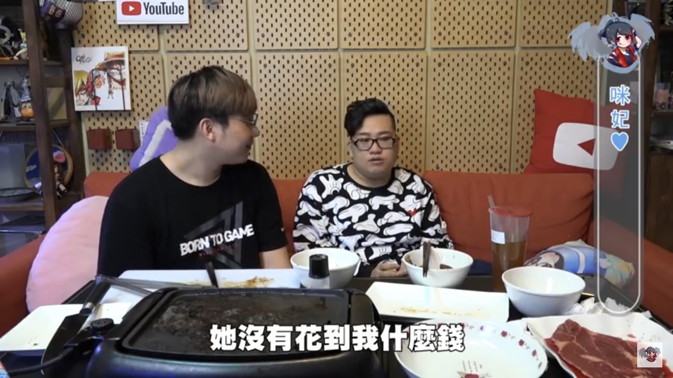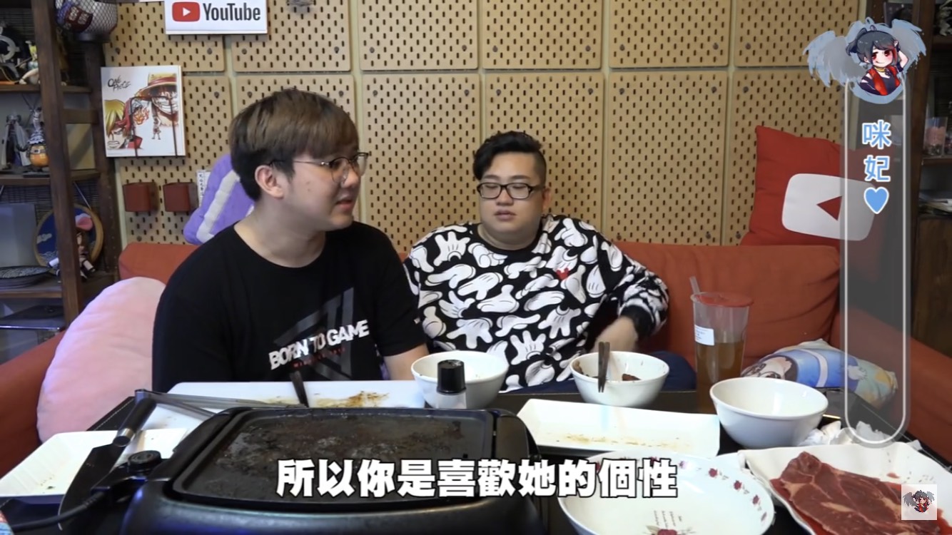 黑羽的這餐我請,少不了吃東西時還會搭配走心的問題,經過上面一連串問題,終於問到九妹「當初跟咪妃怎麼交往的?」,一問到這問題,九妹羞澀回答:「這個問題好害羞喔」,不過他也有補充說明:「覺得她蠻好的啊 會約她出來拍片」,但九妹也說明,當初並不會特別約她出來吃飯,但會約她拍片,畢竟他也坦言男生單獨約女生出去,就算是很明顯地追求。
