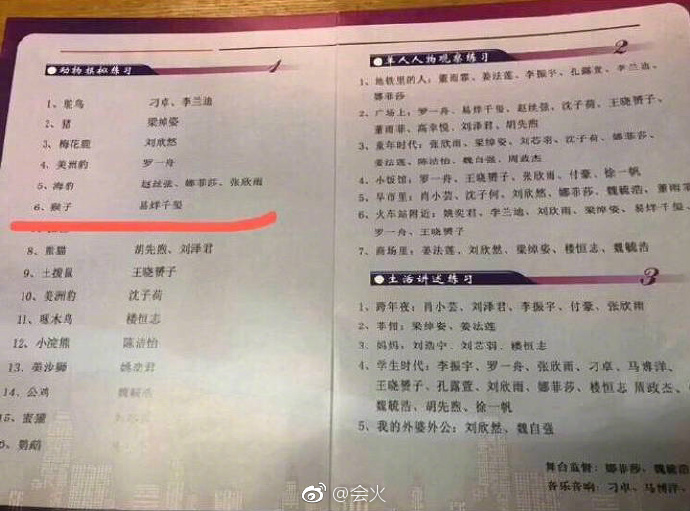 易烊千璽和胡仙煦在中央戲劇學院是同班同學,兩人私下感情相當好,都是就讀表演戲中的話劇影是表演專業,近期,又被網友捕捉到兩人和李蘭迪在學校期末考術科考試的畫面。照片中的三人穿著都十分簡便應試,其中站在圖中最左邊的易烊千璽狗啃式劉海顯得特別顯眼,而站在最右邊的則是李蘭迪,此外,曝光的術科考試項目也相當多元像是生活講述、人物現象和動物模擬的練習,而網友也發現胡先煦女友刁卓和李蘭迪在「模仿動物」類被分到同一組,一起模仿「鴕鳥」演出。