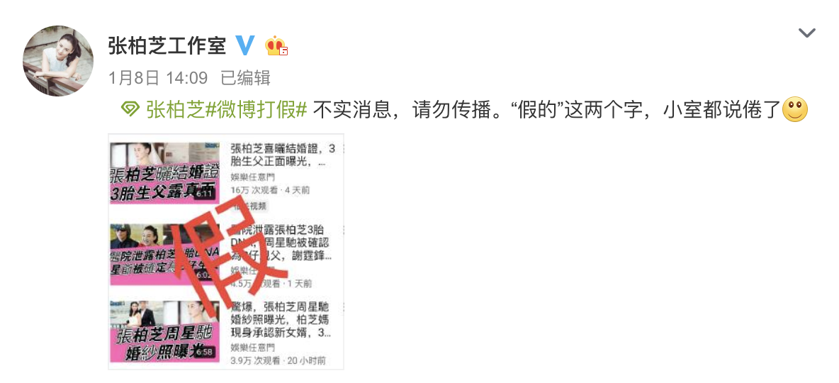 而近日,小王子的生父疑雲又再度浮上檯面,有消息指出生父其實是周星馳,更有謠傳醫院洩漏小孩DNA確認生父是周星馳,以及張栢芝與星爺的婚紗照的消息,而張栢芝的工作室也馬上發布貼文打臉,表示:「不實消息,請勿傳播。「假的」這兩個字,小室都說倦了」,也有網友在下方留言:「看到這個標題我笑了,你們到底要給張柏芝孩子安排多少個爸爸」、「真能胡扯」、「服了那些人了,一天天閒的沒事幹」