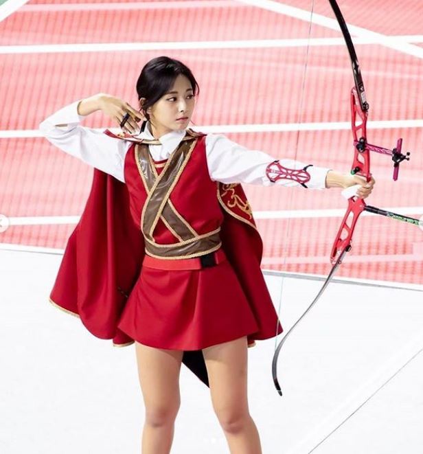 7日,邁入第10年的偶像明星運動會順利展開,現場更久違聚集了三大公司SM、JYP和YG旗下藝人,其中TWICE成員子瑜射箭環節一如往常成為外界關注焦點,別於以往穿著運動服,子瑜一身紅色套裝下身穿著短裙現身,射箭功力更是進步神速,拿下連續4次正中紅心的10分滿分,抬頭看計分板的子瑜甚至忍不住羞澀地低頭微笑,小女人的反應被網友截圖反覆播送,在網路上蔚為討論。