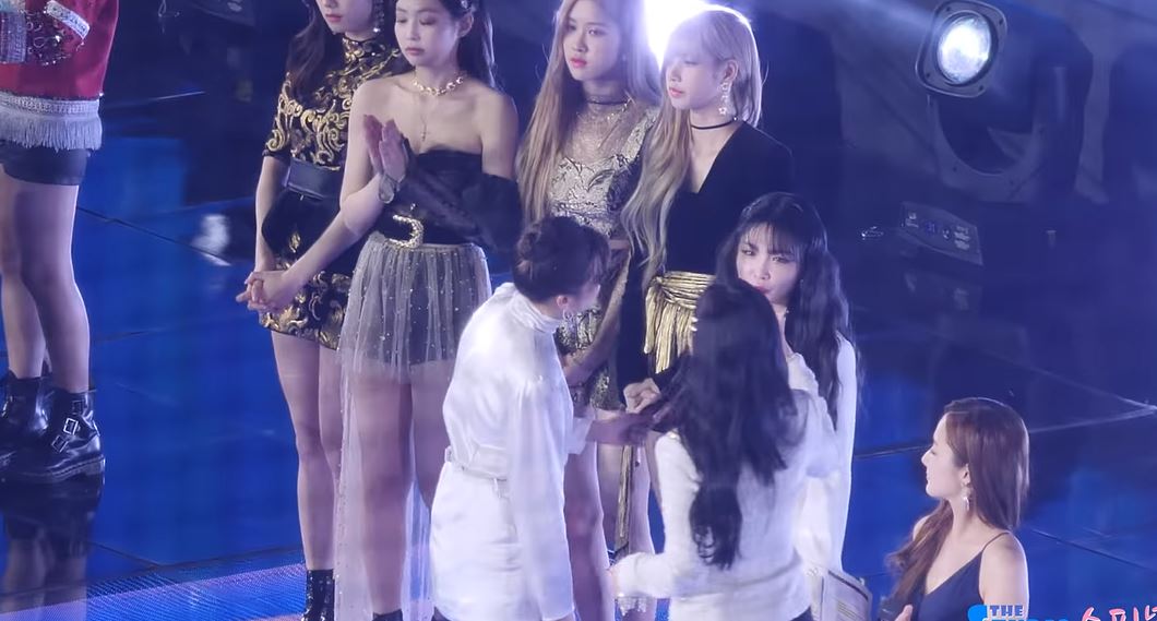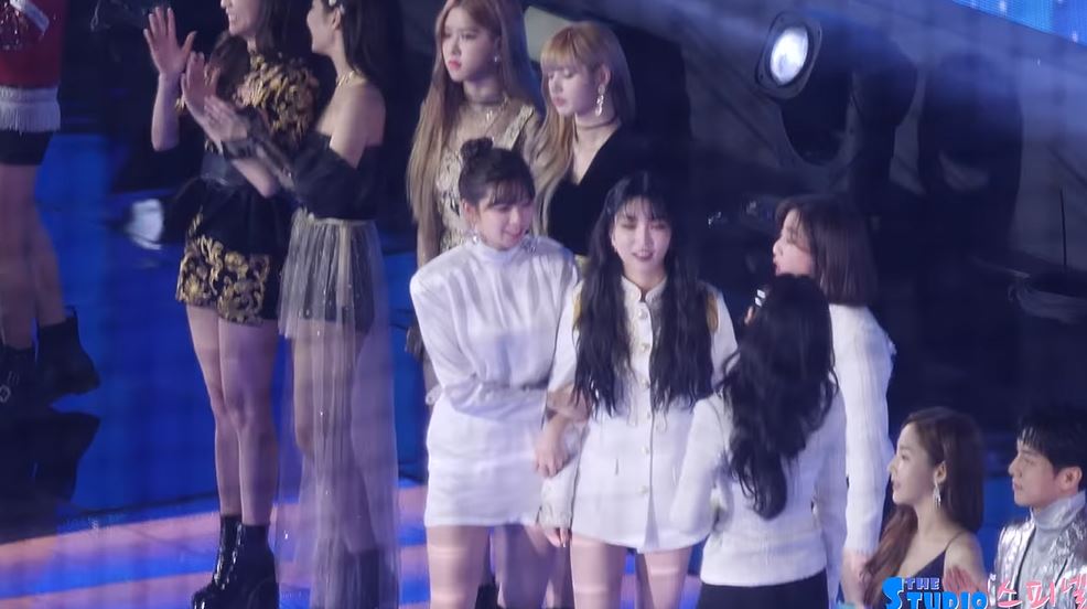 而頒獎典禮結束後,眾韓團聚集到舞台上,隨著音樂開心起舞也交頭接耳的聊天,當晚站在TWICE和BLACKPINK旁邊的請夏,只能偶爾跟著拍手,臉上也失去笑容。不過,隨後站在前方的定延、娜璉和志效竟突然主動搭話,先是拉起她的胳膊,還玩弄她的頭髮,接著也在耳邊說起悄悄話,讓原先落的請夏瞬間笑了起來,這一幕也讓粉絲直呼TWICE真的很體貼。