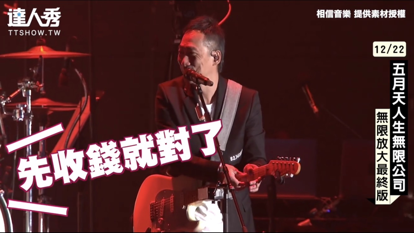 亞洲流行音樂天團「五月天」出道至今十多年,創作出非常多首膾炙人口的歌曲,本次《人生無限公司》巡迴演唱會更是開到122場,幾乎可以說是一整年都在巡迴演出,最終巡迴到台中場,五月天一如往常的走親民路線,不僅會閒話家常,更會互相講幹話,惹得台下粉絲笑翻全場,更是和許多藝人來賓一搭一唱,效果十分好!