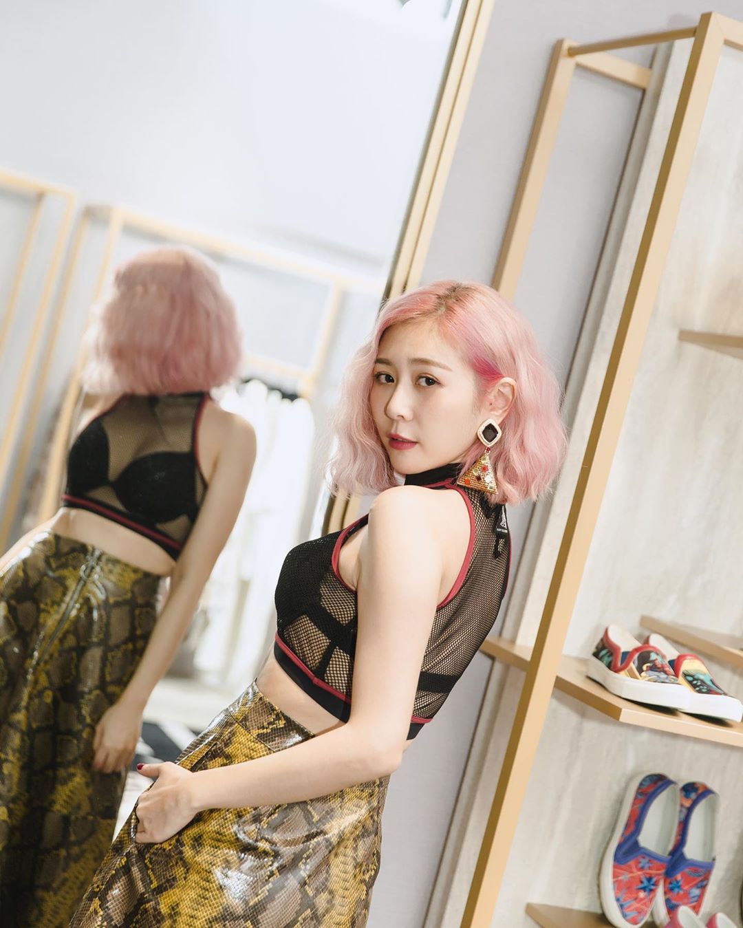 照片中可以看到,她身穿一件桃紅色禮服,胸前的深V剪裁讓她露出胸前渾圓半球以及深邃事業線,還搭配一條閃亮頸鍊,格外吸睛,讓人不知該把目光放在哪裡。
