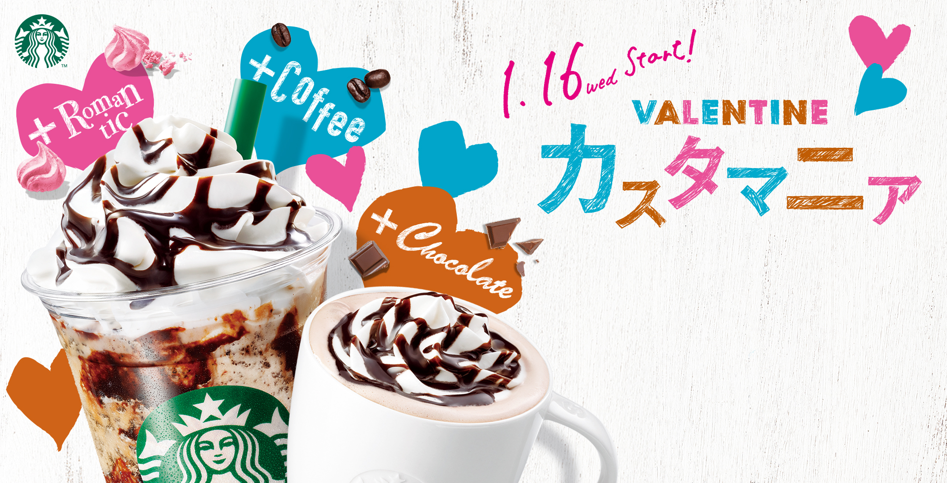 情人節快到了,各地星巴克紛紛推出新活動,例如日本星巴克將推出「Valentineカスタマニア」主題限定飲品,會有「咖啡」、「浪漫」、「巧克力」三種口味讓客人選擇!