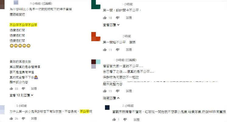 許多網友看了紛紛替小鬼抱不平:「瓶子擺的也太不公平了吧!是故意要整黑隊小隊長嗎?」、「直線距離和球瓶之間的縫隙以及球瓶下方的紙板,小鬼怎麼可能過關?」、「 跟本就是讓KID贏,別說這也叫節目效果,當觀眾是瞎的,玩很大不如叫假很大」、「當我們眼睛是瞎了嗎?有墊紙板跟沒墊紙板差很多好嗎!是想弄小鬼也不是這樣」。