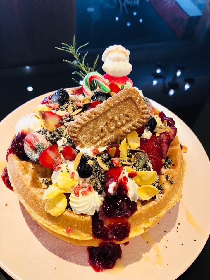 又或是聖誕節推出的莓果厚鬆餅,料超多、看起來超繽紛。