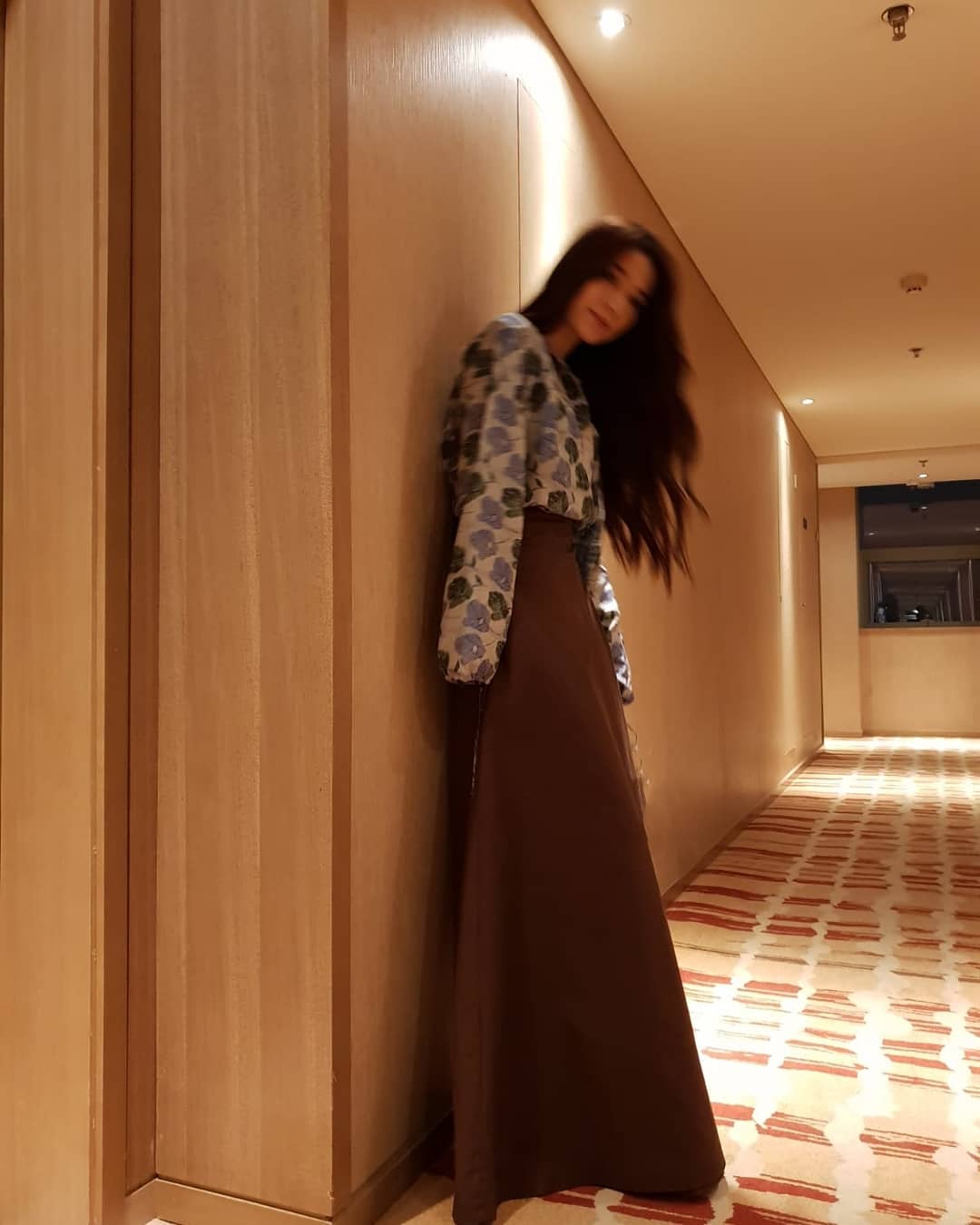 Hebe昨天在IG PO出兩張照片,只見她穿著白底的花襯衫搭配咖啡色的氣質長裙,在走廊上輕靠著牆壁,對鏡頭露出甜甜的笑容,但看上去似乎有點晃到,照片變得很模糊;下一張她看著遠方,想營造出藝術氣質的樣子,沒想到卻比剛剛那張還要晃。