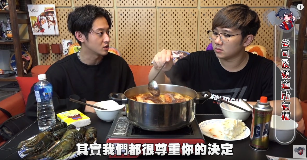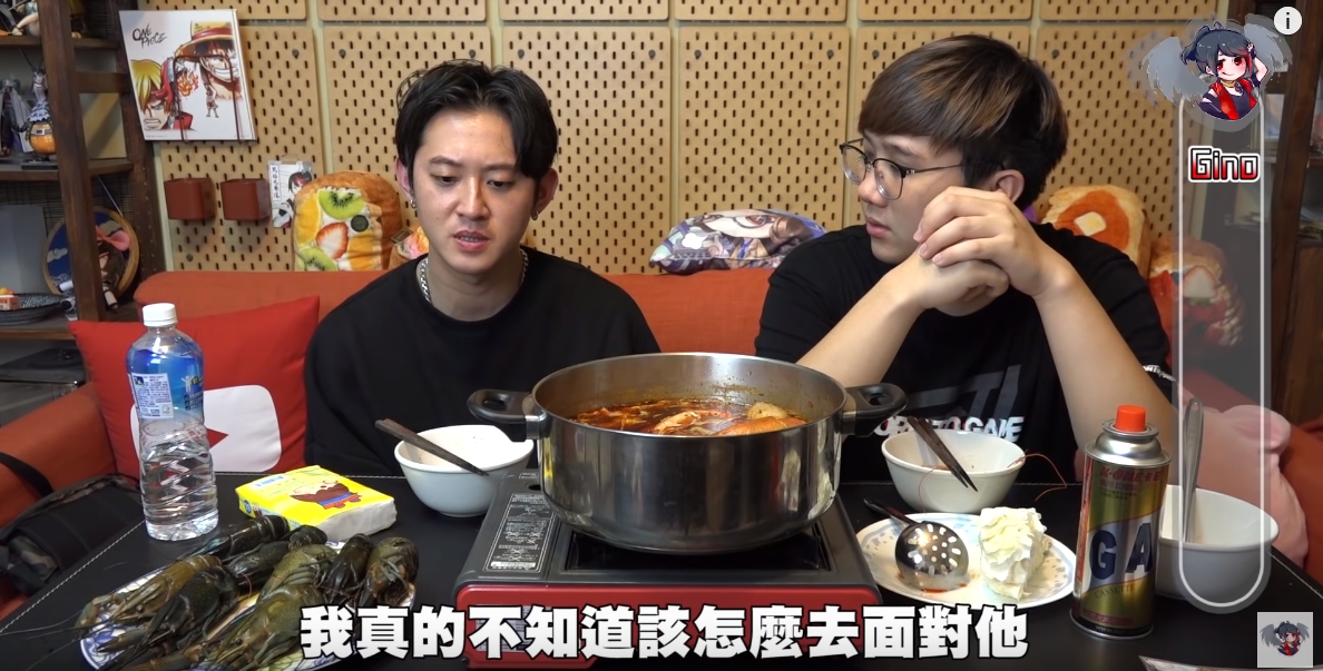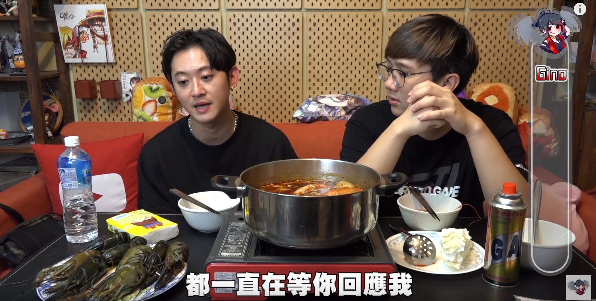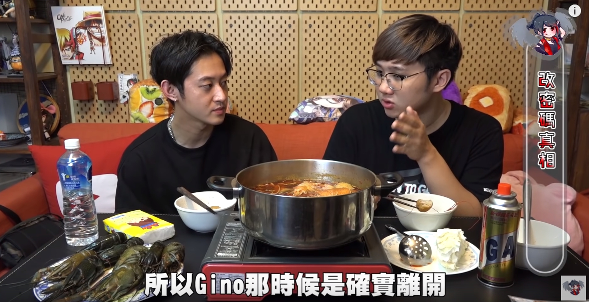 網紅團體「Gino脖子」由Gino、脖子、華仔三人組成,後來因為團隊金錢、分配角色糾紛,最終拆夥華仔、Gino離開團隊,後續更引發脖子改密碼並更名事件,Gino更直接和脖子槓上隔空交戰,雙方各說各話。這次,脖子現身黑羽的節目企劃《這餐我請》,回答許多問題真相,脖子更坦言:一直以來都很愛Gino!
