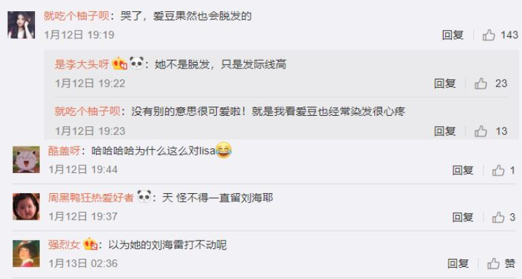 由於Lisa洋娃娃般的齊瀏海一直是外界對他的印象,因此照片一上傳立刻引起大批網友回響,紛紛盛讚沒了瀏海的Lisa還是很漂亮,不過也有網友發現「Lisa的髮際線好高」、「怪不得一直流瀏海」,對此也有網友回應「之前看過說Lisa因為是髮色試驗所以掉發很嚴重,保護髮際線吧」。