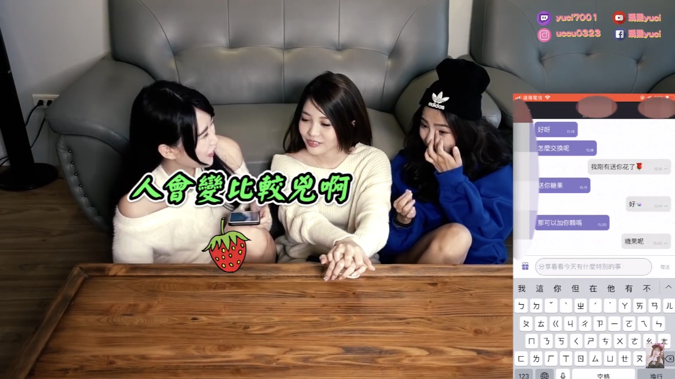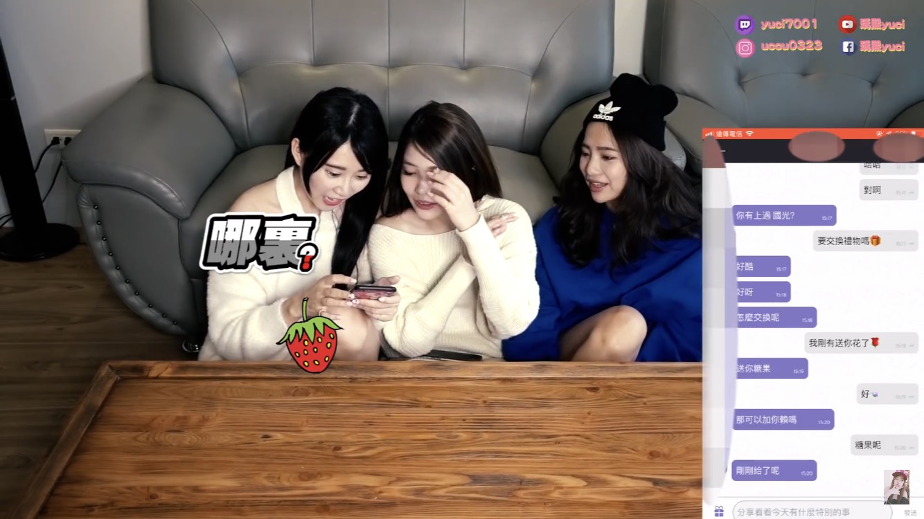 原本兩位好友都是因為瑀熙說要拍喝飲料的相關影片才來的,到了才發現被瑀熙拐來,結果這次是要挑戰交友軟體看誰收到的禮物最多,一開始瑀熙還非常有自信地說自己會贏,在貝莉莓這個不太會跟別人聊天的苦主,瑀熙更是傳授給她聊天方式,從這邊可以知道瑀熙超會撩人的,不過很可惜,貝莉莓還是沒有收到任何一個禮物,換到蕾兒時,瑀熙也同樣指導她,讓她成功獲得一份禮物。