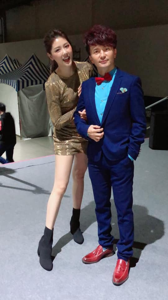 照片中見到,嚴立婷紮著一頭俐落的馬尾,襯托出她洋娃娃般的精緻臉蛋,在台上的她穿著一身合身金色長袖洋裝,展現出她纖細的蠻腰,完美的曲線一覽無遺,性感又不失大方氣質。雖然嚴立婷上半身包緊緊,但目光往下移其實超性感!短版的洋裝只蓋到屁股下,嚴立婷纖細嫩白的大長腿大剌剌的露在外面, 再搭配黑色的短靴,更拉長她的比例。