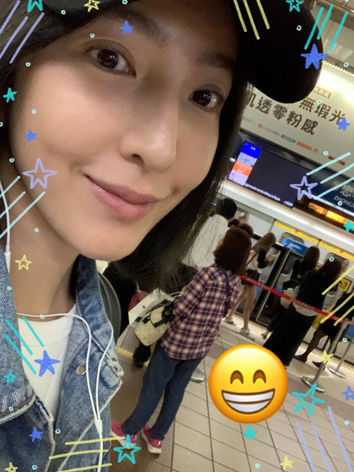 照片中看到,楊謹華戴著黑色鴨舌帽,臉上幾乎沒有甚麼妝,以素顏入鏡,不過臉上幾乎看不出歲月的痕跡,且肌膚相當透亮。她穿著牛仔外套內搭白色上衣,打扮也超級親民,從照片中的背景看到,她所在的地點正是人潮眾多的板南線,但竟然沒有民眾認出她來。