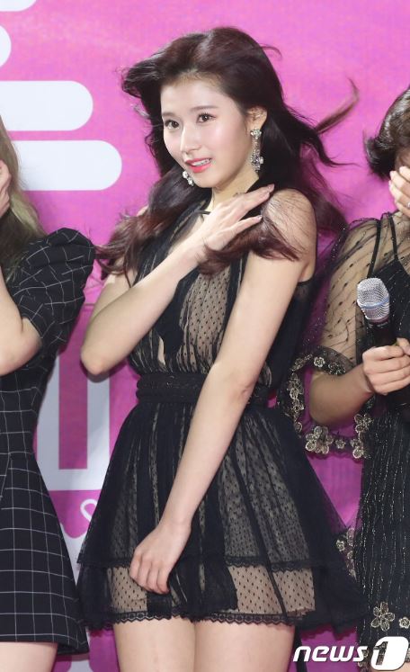 而另一頭穿著紅色長裙的Mina,前額瀏海雖被風吹亂,卻也顯得相當自然,Momo因為穿著緊身短裙而免去了曝光的風險,隨著腳步往受訪區移動,隨風飛舞的髮絲一樣十分吸驚,當晚TWICE也以歌曲《Dance the Night Away》、《What is Love?》、《YES or YES》得到「本賞」殊榮。