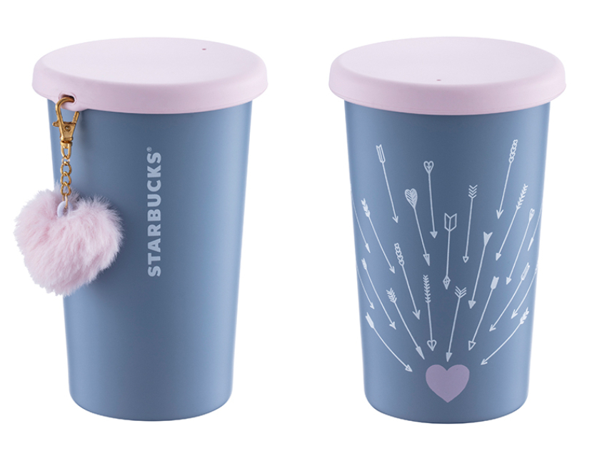 除了貓咪情侶的對杯,星巴克的Valentine系列也有以「萬箭穿心」為造型的杯子,是否也正期待自己有很多人追求呢?