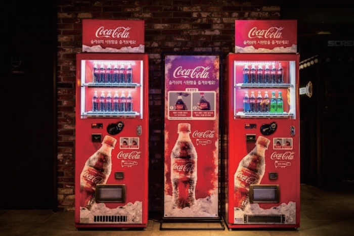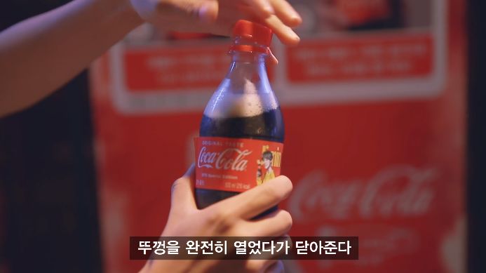 這個販賣機在夏天超火紅,只要投進2500元韓幣(約70元台幣),就會得到一瓶可樂或雪碧,這時候把蓋子打開再蓋起來,輕輕搖晃瓶身2~3回,再用手指彈一彈捏一捏,一杯可樂冰沙就大功告成啦!如果是夏天逛街逛到一半口渴,也能簡單喝到透心涼的冰沙,肯定會幸福到升天XD