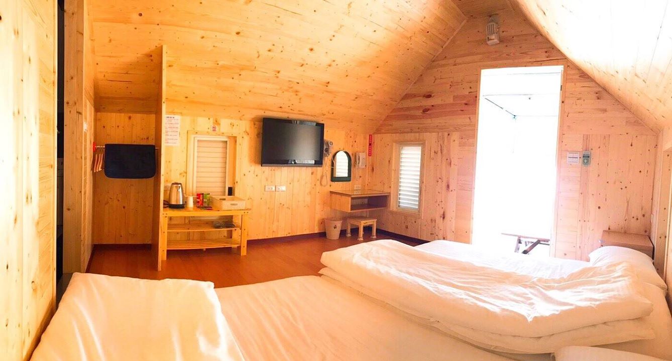 此露營區分為4人房、雙人房的小木屋區及搭帳區。若你不想自己搭帳篷的話,直接一卡皮箱就可以入住充滿木頭味道的溫馨小木屋囉~擁有獨立的衛浴空間及旅店的配備用品,十分方便。