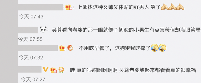 看見吳尊如此溫柔又浪漫的行為,網友也紛紛留言:「哇 真的很甜啊啊啊啊 吳尊老婆笑起來都看著真的很幸福」、「不用吃早餐了,這狗糧我吃撐了」、「吳尊看向老婆的那一眼就像個初戀的小男生有點害羞但卻滿眼笑靨」、「上哪找這種又帥又體貼的好男人 哭了」