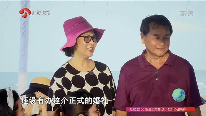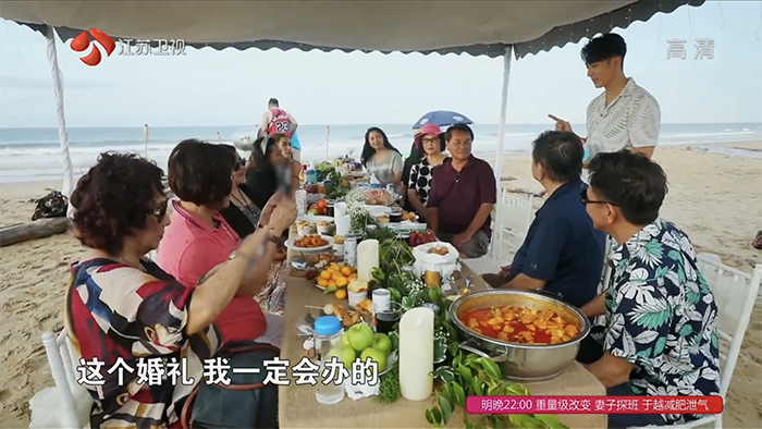 最新一集中,一行人坐在海邊聊天,而吳尊打頭陣選擇了真心話挑戰,第一題被問道「和老婆的初吻是什麼時候」,而吳尊也害羞的演繹當時的畫面,在家裡的卡拉OK機前,兩人在看電影時當老婆轉頭過去看吳尊時,吳尊就直接捧著她的臉親下去。而吳尊的爸爸也說出他內心一直很愧疚的事,當時吳尊媽媽重病,直到現在吳尊的婚禮都還沒有舉行,而吳尊也霸氣的說出:「這個婚禮,我一定會辦的」,當場給老婆一個浪漫的承諾。