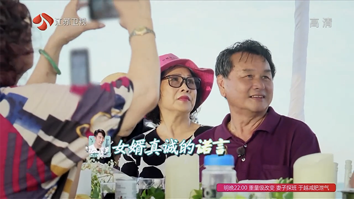 大陸真人實境節目《最美的時光》是由藝人以及父母一同參加,請到吳尊和爸爸、向佐和媽媽、郭碧婷和爸爸等五組嘉賓,在節目中他們也都展現出不同的相處模式,親子形式的節目也獲得觀眾好評。在最新一期中,吳尊也對老婆展露出感謝之情,也答應給她一個浪漫的承諾。