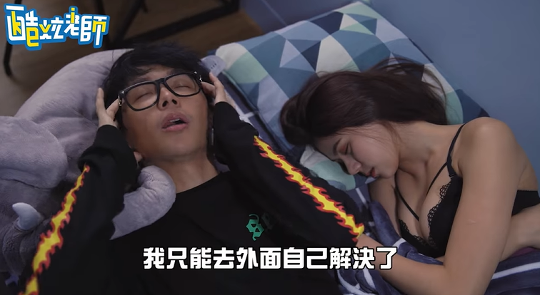 因為劇情需要,兩人也演出同創共枕的戲碼,蕾菈更是僅穿著性感睡衣,側睡的模樣性感逼人!見狀的酷炫也崩潰表示:「她不能幫我,我只能自己解決了」,接著便到房外自己來,沒想到蕾菈卻突然出現直接抓包:「你是不是在摸大象,你有需求為什麼不跟我說」,讓酷炫惱羞表示:「那還不是你叫我不准碰你」!