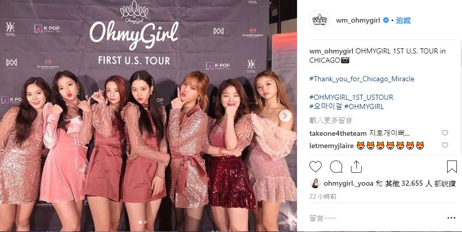 年初才剛以首張完整專輯在日本出道的Oh My Girl,不僅在日本三場巡演的門票全數售罄,18日開始,緊接著也展開首次的美國巡演,從亞特蘭大開始,陸續前往芝加哥、休士頓等城市。