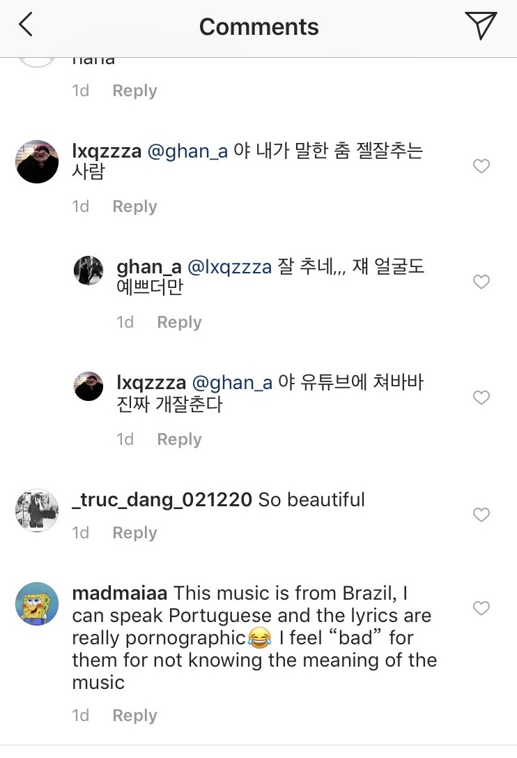 雖然該首歌曲紅遍全世界,引起不少人跟風挑戰,不過一名知悉西班牙語的網友就在YooA的直拍影片下留言透露,其實這首歌曲中帶有不雅暗示。該名網友解釋,這首聽起來拉丁風十足的歌曲就是來自巴西,不過「歌詞實在太煽情」,面對大批跟風者網友覺得聽起來有些不舒服。