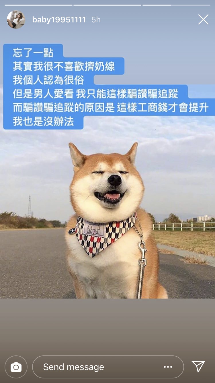 小雲寶寶最後強調,「其實我很不喜歡擠奶線,我個人認為很俗,但是男人愛看,我只能這樣騙讚騙追蹤」,表示為了讓工商的錢提升,「我也是沒辦法」。