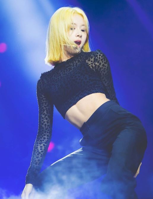 而另一成員彩瑛,15日參與「首爾歌謠大賞」時,突然從一頭黑直髮搖身一變成亮黃中長髮,而當天音樂銀行的舞台上,彩瑛全身素黑,上身穿著蕾絲上衣,下身搭配黑色喇叭褲,酷帥風格令外界眼睛為之一亮,短版上衣更展現出纖細腰圍和健美腹肌。
