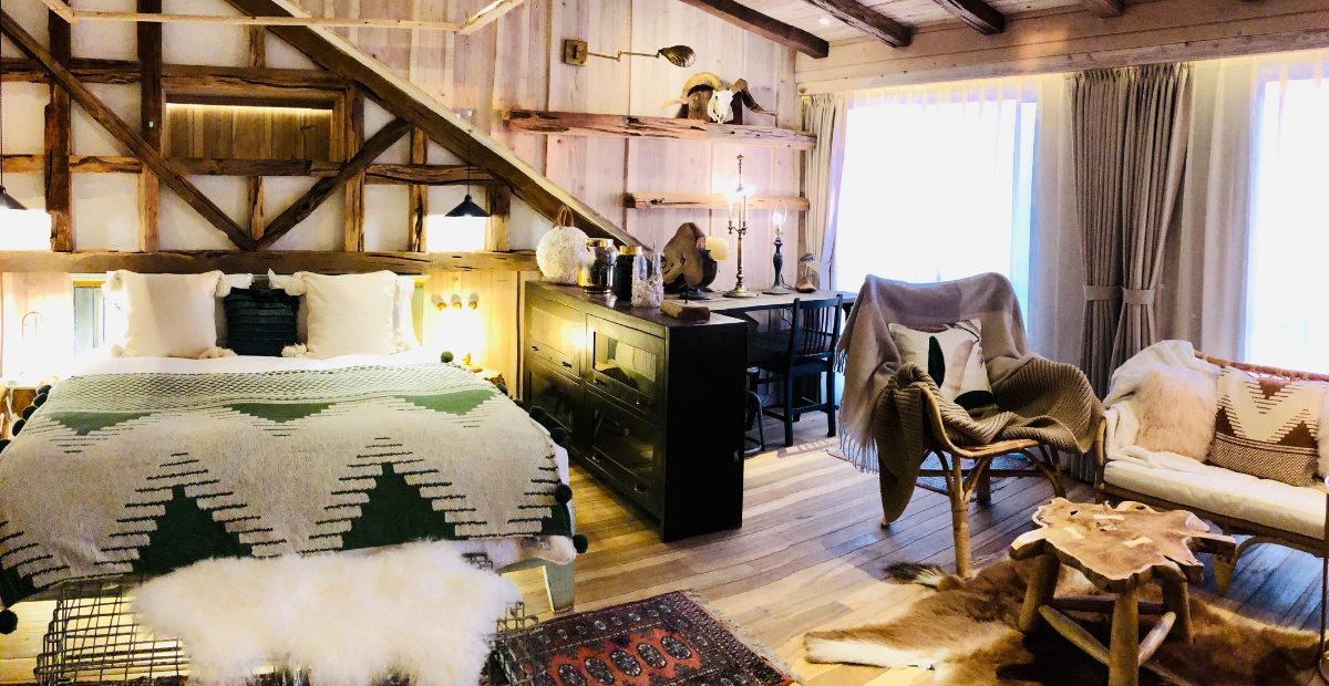 總共有3種佈置,但每一種都好像《權力遊戲》的場景,看起來就超級奢華、溫暖的皮草,而木製牆壁也有給人住進小木屋的舒適感。