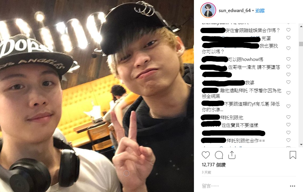 孫安佐在去年於美國就讀高中時因揚言攻擊學校而造成社會軒然大波,成為美國及台灣兩地媒體關心的焦點,當時孫安佐的父母孫鵬及狄鶯也為了兒子孫安佐惹出的風波花費鉅額聘請律師,事件之後孫安佐被關押了261天才回到台灣,回到台灣的他也開始展開全新的人生,積極轉型向外界展現他改過的決心,如他近期開始經營Youtube頻道「Sun 孫安佐的頻道 Edward」,在網上引起網友關注,在一夕之間成為新生代網紅,但是近日他在IG上放上與百萬網紅「放火」的合照,卻引來了網友的一片負評。