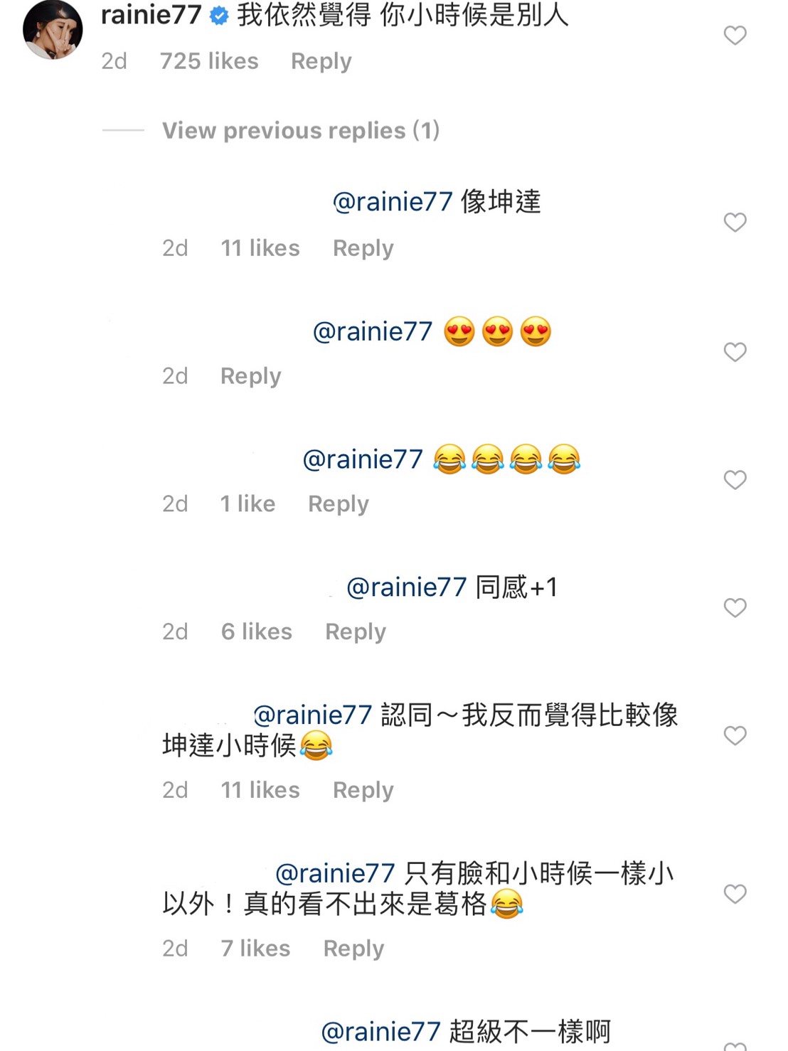 小鬼在Instagrem上搭上現在正夯的舊照挑戰,並在文中寫下「好吧 大家都在玩 我也來玩一下 我是不是沒什麼變 #30年」,但照片一發出網友紛紛留言表示「那是坤達吧」「明明就坤達!」甚至還甚至還釣出「楊丞琳」回應「我依然覺得 你小時候是別人」!引起熱烈討論。