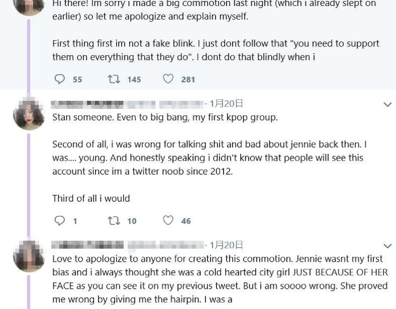 不過該名粉絲也解釋Jennie的善行完全讓他改觀,文中也表示「Jennie那天親手遞給我髮夾後,讓我對他的印象完全改觀」,至於當晚沒有及時答謝,他解釋「當時Jennie指著我時,我完全傻住以至於不知道該如何對他表達感謝」,Jennie的舉動扭轉了黑粉的心態,該名粉絲也說到「從此之後,我保證會更重視且保護他」。