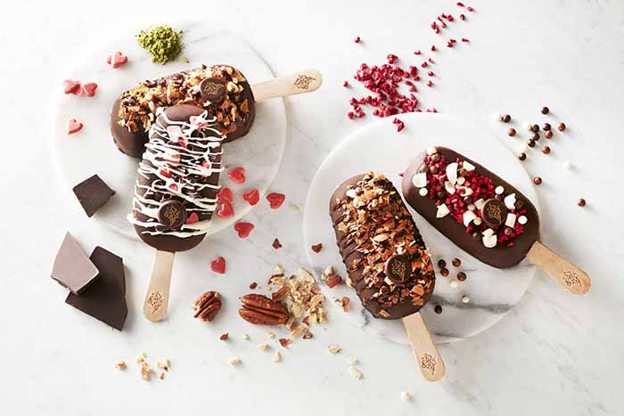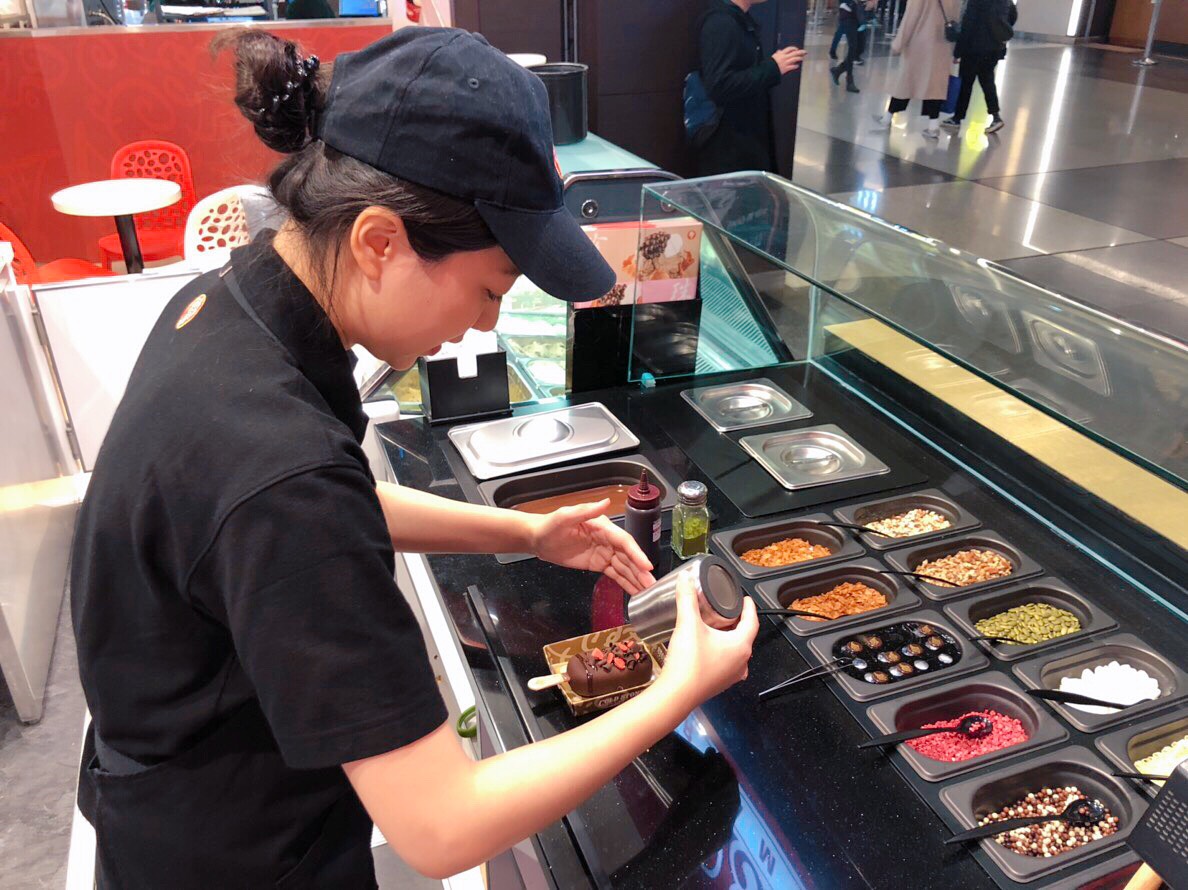 過去的COLD STONE產品品項只有冰淇淋、冰淇淋蛋糕,但從今天開始,又多了一個「濃脆雪糕系列」。第一波主打的就是268種選擇的客製化雪糕,想要什麼配料自己點,再搭配「法式玫瑰鹽香草冰淇淋」,並淋上黃金比例「苦甜濃郁的巧克力醬」,急速冷凍後變成脆口的雪糕外衣。