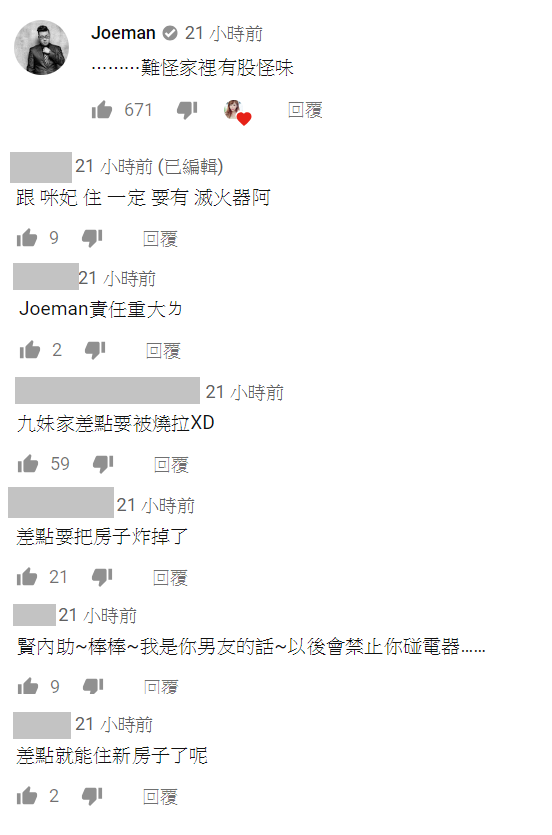 這次的淘寶開箱也讓咪妃直呼「嚇死我啦那個冒煙」,而男友Joeman更是語帶無奈的表示「⋯⋯⋯難怪家裡有股怪味」,也讓網友紛紛在底下留言「跟咪妃住一定要有滅火器阿」「Joeman責任重大ㄌ」「九妹家差點要被燒拉」「賢內助~棒棒~我是你男友的話~以後會禁止你碰電器……」。