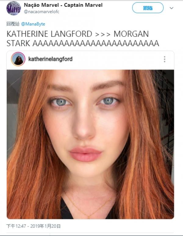 今年 22 歲的澳洲女演員凱薩琳蘭馥(Katherine Langford)在 2017 年主演 Netflix 推出的戲劇作品《漢娜的遺言》(13 Reasons Why)女主角「漢娜貝克」而大爆紅,不過在去年 5 月凱薩琳蘭馥宣布要離開《漢娜的遺言》系列,不會再繼續於第 3 季演出。而在此同時她也秘密加盟了漫威超級英雄主線大片《復仇者聯盟 4 : 終局之戰》(Avengers 4: Endgame)的演出,當所有漫威影迷在去年 10 月得知凱薩琳蘭馥要演《復仇者聯盟4》之時,她其實早已經秘密前往片場將所有戲份演完。