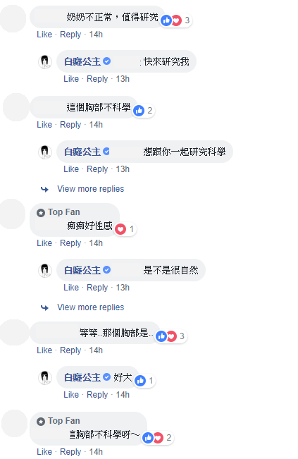 而影片發布之後,許多網友也紛紛留言:「這個胸部不科學」、「 奶奶不正常,值得研究」、「整部都沒有在看產品,反而是好奇胸部到底塞了多少東西?」、「 等等..那個胸部是.」、「這廣告明明就是業配隆乳霜吧?」,痴痴也一一親回,相當親民。