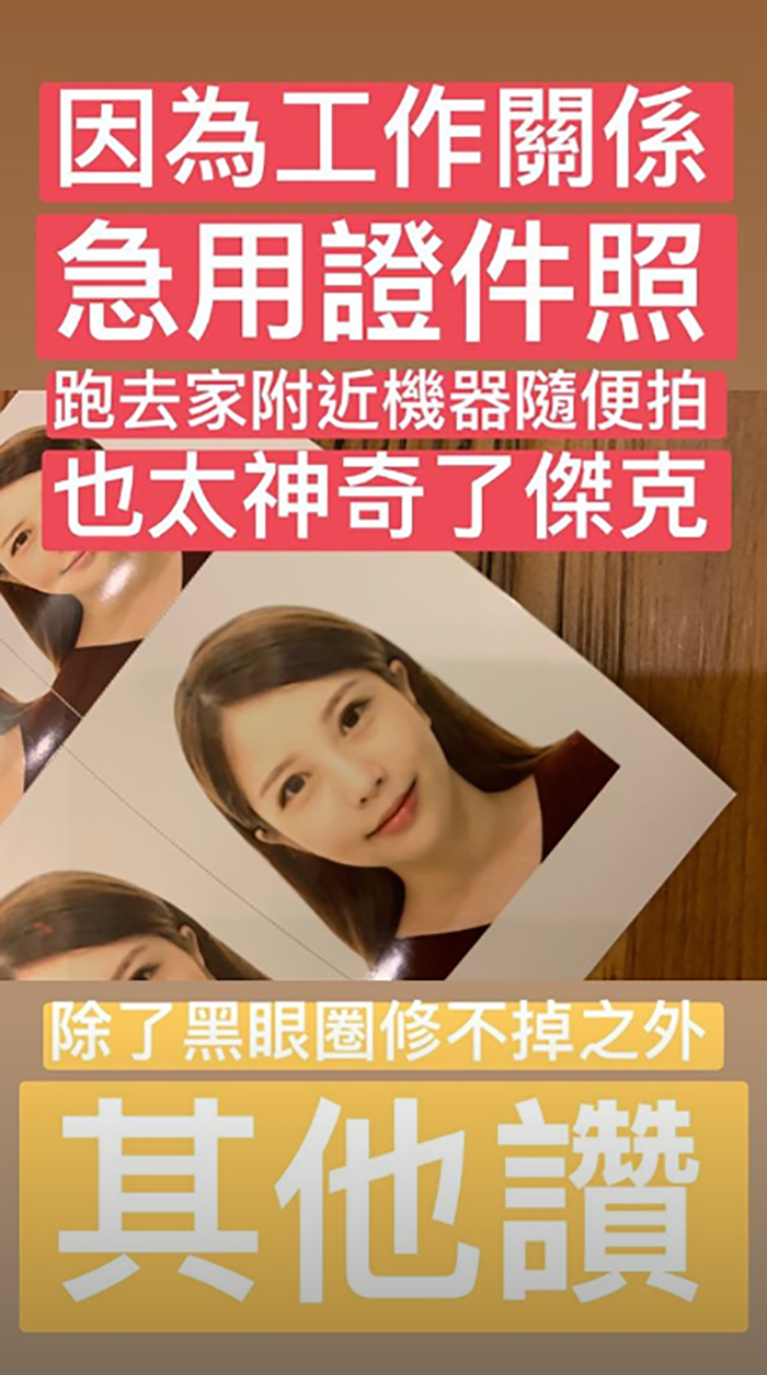 個性相當開朗的瑀熙也時常透過社群網站PO文和粉絲互動,而近日她就在IG上傳了一則限時動態,讓網友看到後驚為天人,內容是瑀熙表示因為工作的關係,急需用證件照,她因而跑到住家附近的機器,原本想隨便拍拍當作證件照,但沒想到機器拍出來的照片讓瑀熙大為驚訝,表示「也太神奇了傑克!」,她還補充說到除了黑眼圈無法消除之外,其他的部分她都相當地滿意。