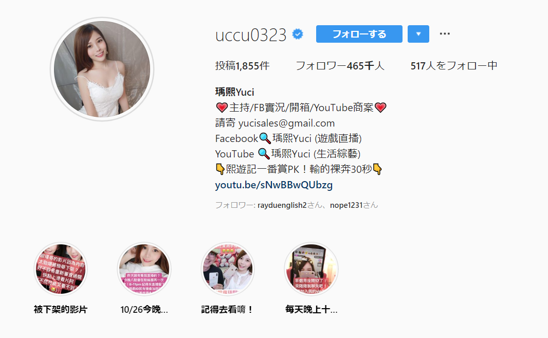 人氣實況主「瑀熙」時常在個人頻道「瑀熙 Yuci」做許多新奇物品的開箱或是旅遊vlog,因為甜美的笑容加上她姣好的身材,頻道至今已累積了一票粉絲,瑀熙從2017年底開始經營YouTube頻道,起步雖晚的她卻也只花一年多的時間就累積了32萬粉絲訂閱,而頻道裡也推出許多開箱和美食影片深受粉絲喜愛,而瑀熙幽默的性格加上不做作的反應,更是讓她能在網路上累積高人氣的要素。