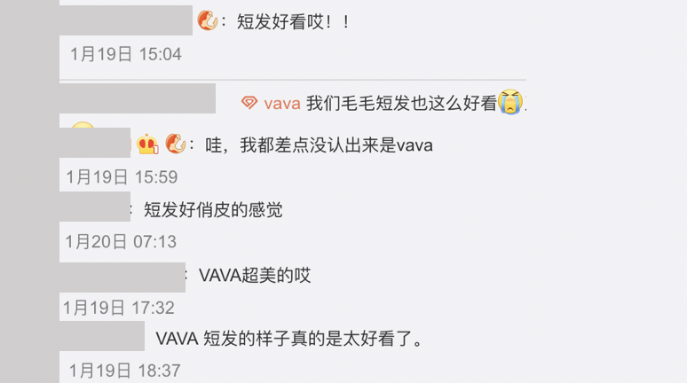 看見女神VAVA第一次把頭髮剪到耳下,網友也紛紛留言:「短髮好看哎!!」、「我們毛毛短髮也這麼好看」、「哇,我都差點沒認出來是vava」、「短髮好看」、「短髮好俏皮的感覺」、「VAVA超美的哎、「VAVA 短髮的樣子真的是太好看了」