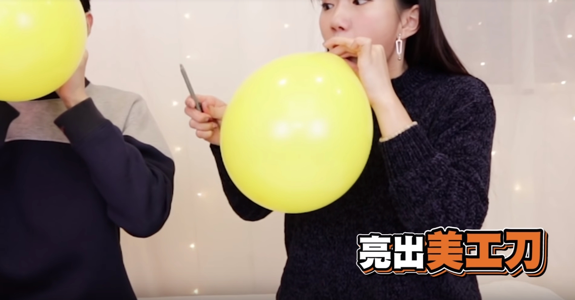 平時家寧被Andy惡整不少次,這次終於輪到家寧復仇啦!家寧打算要好好的整Andy,首先家寧先叫Andy吹氣球,Andy原本很聰明的把剪刀收起來,以防家寧趁他閉眼吹氣球時,刺破嚇到他,雖然家寧的詭計被識破,不過她還有暗藏美工刀,依舊成功嚇到Andy抖了好大一下。