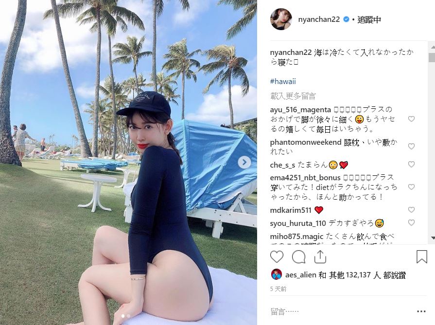 現年30歲的小嶋陽菜她的臉蛋和體態卻絲毫不見歲月的痕跡,近日,她隨著時尚雜誌《sweet》前往夏威夷拍攝,更在IG上大方曬出身穿高衩史庫水的照片。照片中,小嶋陽菜坐在海邊的長椅上休息,她也在文中解釋「因為海水太冷,所以選擇休息」,照片中的小嶋陽菜雖然只拍半身,不過擁有精緻小臉的她仍然大展漂亮的身材比例。