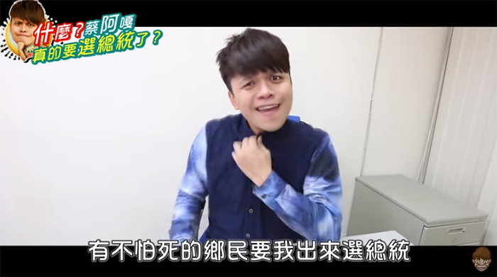 資深網紅「蔡阿嘎」本名蔡緯嘉,今年34歲,他以本土味滿滿、幽默搞怪影片獲得許多粉絲喜歡,除了Youtube主頻道外,也經營副頻道「蔡阿嘎Life」記錄生活點滴,愛子蔡桃貴出世後,又經營第三個頻道,還屢屢登上發燒綁,人氣居高不下。去年有網友拱蔡阿嘎出來選總統,蔡阿嘎近日也再度回應!