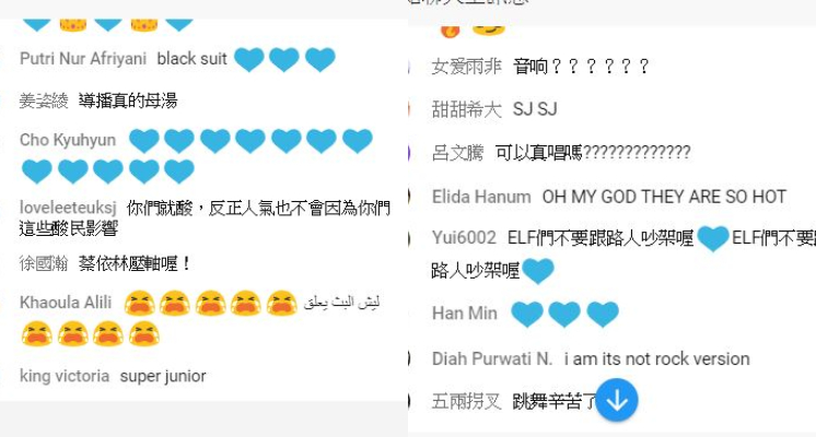 韓國天團Super Junior,26日以「年度風雲歌手」遠從韓國飛來台灣參與「第14屆KKbox風雲榜」,這也是KKbox 14年來首度海外歌手入圍該獎項,現場也一連演出熱門歌曲《Black Suit》、《美人啊》和《Sorry,Sorry》,讓台下粉絲為之瘋狂。沒想到就在典禮於KKbox官方YouTube同步直播時,部分鄉民竟以「對嘴韓團」洗版,引起全國ELF(SJ粉絲名)不滿,大批出面護航表示「聽過現場就知道,他們很有實力」。